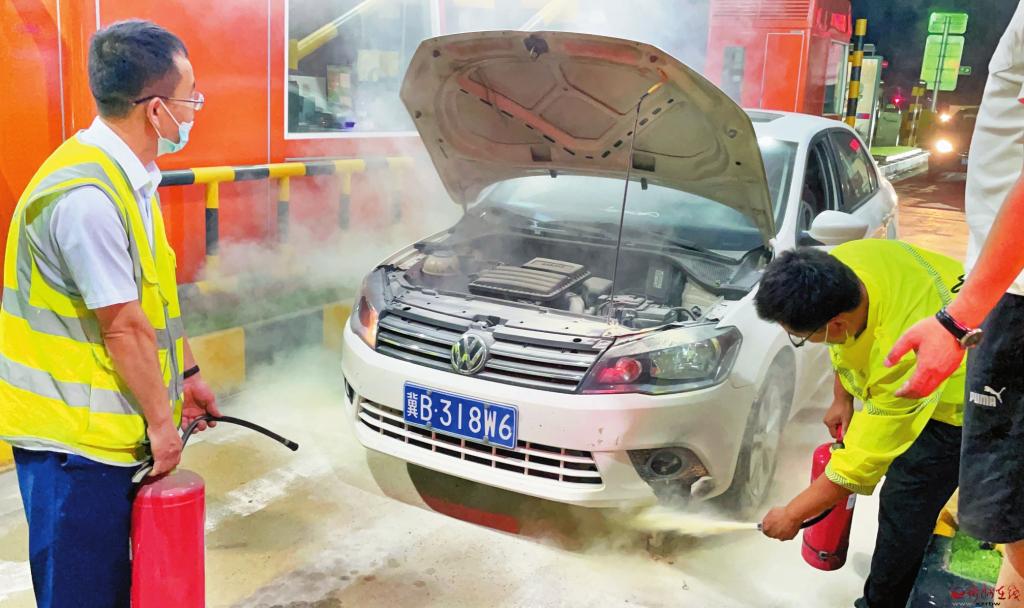 8月22日21時(shí)05分,忻州高速忻州收費(fèi)站出口83車道,一輛私家白色小轎車在等待通行過(guò)程中機(jī)蓋及左前側(cè)霧燈處突然冒煙躥出火苗,監(jiān)控員石桂平在顯示屏上看到后立即通過(guò)對(duì)講機(jī)告知值班站長(zhǎng)周麗青和當(dāng)班帶班班長(zhǎng)白羽鴻,讓其迅速前往83車道對(duì)起火車輛進(jìn)行處置。收到信息后,帶班班長(zhǎng)立即帶領(lǐng)應(yīng)急人員對(duì)車輛進(jìn)行滅火處置,值班站長(zhǎng)帶領(lǐng)安全員趕往現(xiàn)場(chǎng),及時(shí)疏散臨近車輛并關(guān)閉車道,以防其他鄰近車輛連帶受損。火情消除后,工作人員將車輛快速推移至外廣場(chǎng)安全地帶并等待車輛起火溶解處冷卻,觀察無(wú)安全隱患后才離開(kāi)。
