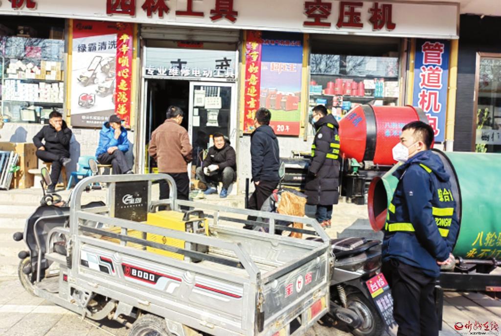 近日,市生態(tài)環(huán)境局定襄分局執(zhí)法隊(duì)在責(zé)任片區(qū)開展市容市貌專項(xiàng)整治工作。執(zhí)法人員對違規(guī)商戶進(jìn)行勸導(dǎo),引導(dǎo)他們自覺糾正占道經(jīng)營行為。 (照片來源:市生態(tài)環(huán)境局官網(wǎng))