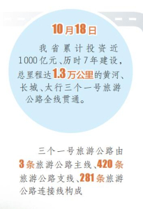 三個(gè)一號旅游公路由3條旅游公路主線、420條旅游公路支線、281條旅游公路連接線構(gòu)成。全線貫通既是建設(shè)時(shí)期的結(jié)束,也意味著全線聯(lián)網(wǎng)的開始,在三晉大地上,將唱出轉(zhuǎn)型發(fā)展的黃河大合唱,奏響旅游強(qiáng)省的長城交響樂,書寫鄉(xiāng)村振興的太行抒情詩。