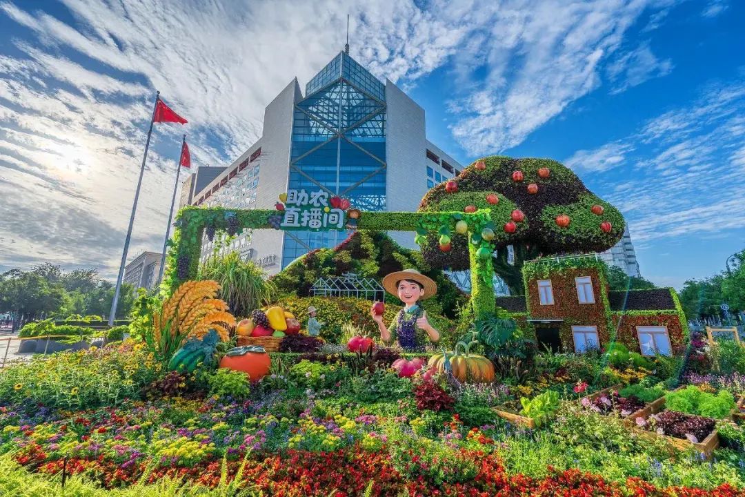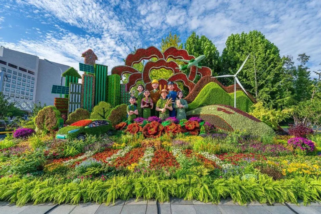 花壇主體選用五色草、四季秋海棠、彩葉草等穴盤苗植物,勾勒出花開盛世、生機(jī)盎然的繁榮圖景。