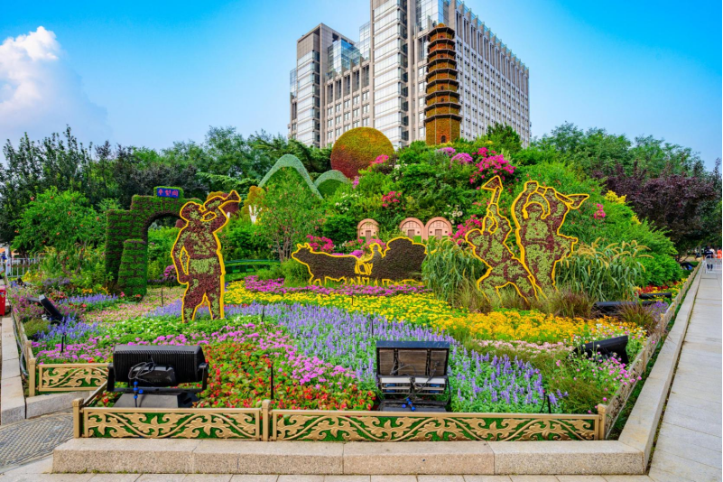 從建國門到復(fù)興門,10座花壇跨越了80余年的歷程,既展現(xiàn)了中國人民抗日戰(zhàn)爭時(shí)期的艱苦卓絕、眾志成城,也描繪了新時(shí)代國家日新月異的發(fā)展以及人民美好生活的場景。