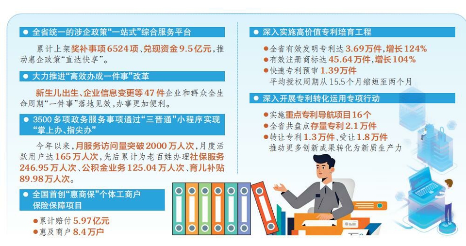 營商環(huán)境是企業(yè)生存發(fā)展的土壤。“十四五”以來,我省始終將優(yōu)化營商環(huán)境作為高質(zhì)量發(fā)展的關(guān)鍵支撐。全省市場監(jiān)管系統(tǒng)、審批服務(wù)系統(tǒng)立足職能、改革創(chuàng)新、攻堅克難,從政務(wù)服務(wù)、數(shù)字賦能、市場監(jiān)管、質(zhì)量安全等多維度發(fā)力,推動全省營商環(huán)境持續(xù)優(yōu)化、市場活力充分迸發(fā),為全省全方位轉(zhuǎn)型發(fā)展筑牢堅實基礎(chǔ)。