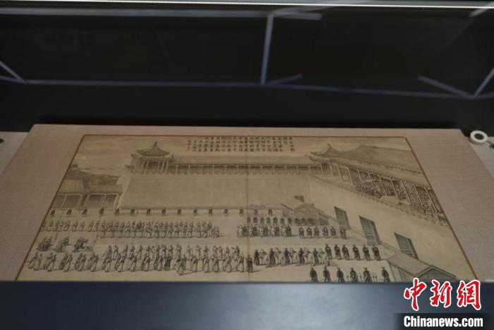17世紀,隨荷蘭使團出行的約翰·尼霍夫在版畫中描繪了使團在太和殿廣場等待順治帝接見的場面;堪稱18世紀銅版畫藝術的巔峰之作《乾隆平定準部回部戰(zhàn)圖》,于乾隆年間由意大利人郎世寧等宮廷西洋畫師奉旨繪制。展覽展出了《乾隆平定準部回部戰(zhàn)圖》的其中一幅作品真跡,繪圖精美、鐫刻精良,難得一見。