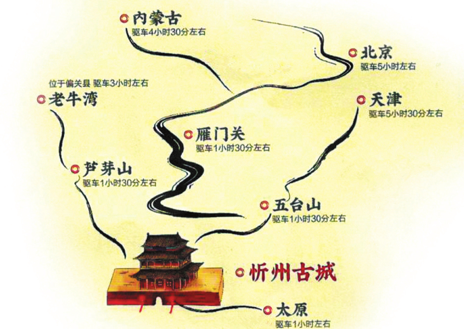 來到這里,你可以站在溝壑縱橫、梁峁起伏的黃土高原,欣賞懸崖峭立、水石相激的晉陜峽谷,也可以在古木參天、濃蔭蔽日的森林公園里散步,在百草茂盛、一望無垠的高山草甸上仰望星空。你可以游覽世界文化景觀遺產(chǎn)、佛教名山五臺(tái)山,也可以領(lǐng)略秀容、岢嵐、寧化、代州4座悠遠(yuǎn)古城的各有千秋,登攀三關(guān)營堡、歷朝歷代的邊塞長城。你可以在偏關(guān)老牛灣古渡、河曲西口古渡搖櫓渡河,回想晉商的輝煌,也可以身臨夜襲陽明堡飛機(jī)場(chǎng)遺址,重溫榮耀,感受歷史的震撼……