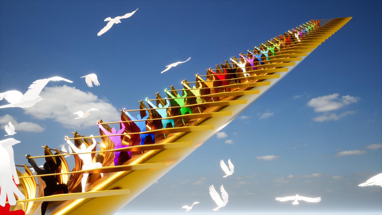 作品承載著長征精神、延安精神在內(nèi)的紅色革命精神、抗疫精神,以及世界和平文化,將舟作為人類文明的象征,人類獲救的符號,連接此岸與彼岸,連接文明與荒蠻,連接廣袤的宇宙,載來文明,送來曙光,舟行七千年歷史,厚載五千年文化的深層意義突顯出來,它載著億萬人民的偉大夢想駛向民族復興的光輝彼岸,將中華民族與世界人民同舟共濟、拼搏奮進、乘風破浪的壯麗史詩寫在浩瀚無垠的太空與人類文明史上,藝術(shù)化的表達了對人類命運共同體理念的追求。