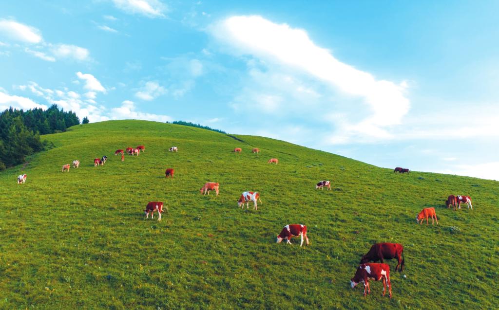 春之韻,萬類復(fù)蘇的萌動。廣袤的草甸上,花海如潮,在暖陽的照耀下,每一片花瓣都閃爍著生命的光澤,氣息芬芳,沁人心脾。牧人趕著羊群上山,清脆的蹄聲像一串輕快的鼓點,叩醒了山谷的春天。最是晨昏時分,山間乳白的嵐氣與村落青灰的炊煙交織共舞,林間清脆的鳥語與牧人悠長的吆喝聲和鳴,共同勾勒出一幅生動而和諧的畫卷。