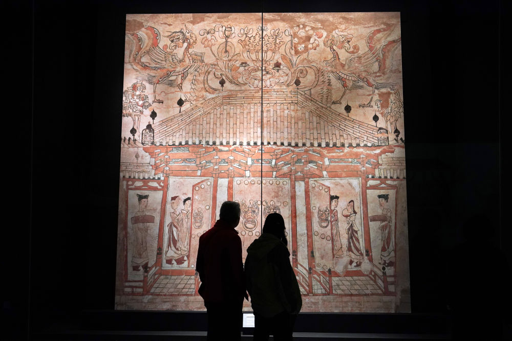 參觀者在太原北齊壁畫(huà)博物館欣賞壁畫(huà)(2024年3月21日攝)。新華社記者詹彥 攝