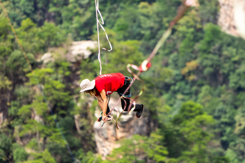 至今,張家界已連續(xù)舉辦八屆黃石寨高空扁帶賽,吸引眾多國內外扁帶愛好者在絕壁間一決高下。近年來,張家界國家森林公園圍繞“旅游+體育”模式,舉辦了黃石寨高空扁帶賽、自行車極限速降賽、百龍?zhí)焯莞呖帐幚K挑戰(zhàn)等眾多賽事,將張家界自然風光與體育相結合,積極推動文體旅深度融合。