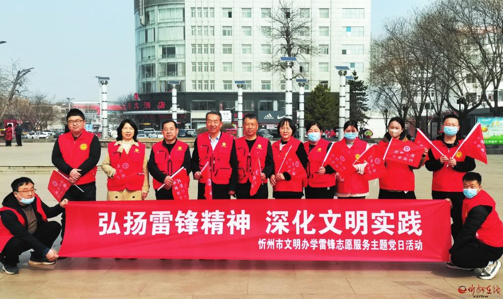 3月21日,忻州市文明辦機(jī)關(guān)支部全體黨員開(kāi)展“弘揚(yáng)雷鋒精神 深化文明實(shí)踐”志愿服務(wù)主題黨日活動(dòng)。本次活動(dòng)旨在進(jìn)一步弘揚(yáng)雷鋒精神,激發(fā)廣大人民群眾“學(xué)雷鋒見(jiàn)行動(dòng)”的積極性和創(chuàng)造性,凝聚起奮進(jìn)新征程、建功新時(shí)代的強(qiáng)大精神力量和有力的道德支撐。