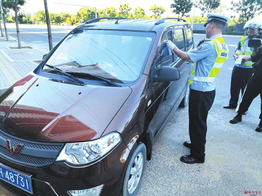 火車站前斑馬線一市民違規(guī)行駛被處罰。 范 濤 攝