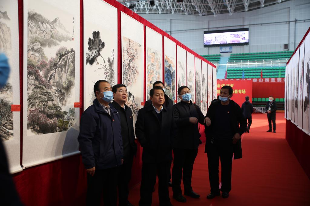 活動(dòng)現(xiàn)場(chǎng),專業(yè)人員為縣領(lǐng)導(dǎo)講解美術(shù)類參展作品的詳細(xì)內(nèi)容。