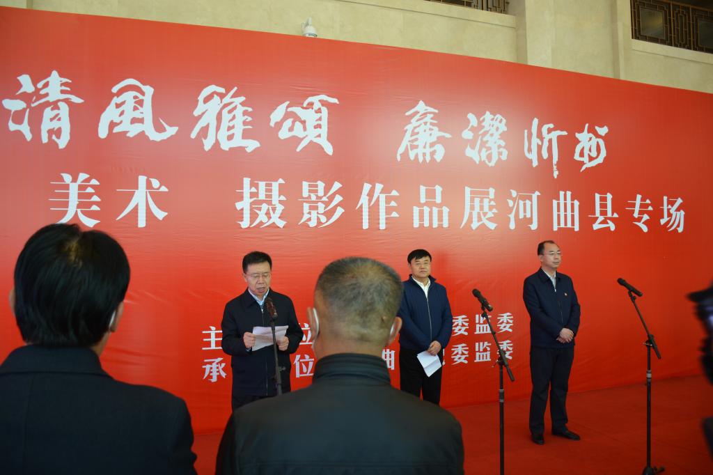 翰墨丹青揚(yáng)正氣,清風(fēng)廉韻沁民心。11月10日,由忻州市紀(jì)委監(jiān)委主辦,河曲縣紀(jì)委監(jiān)委承辦的“清風(fēng)雅頌·廉潔忻州”書畫美術(shù)攝影展河曲縣專場(chǎng),在臨隩公園美術(shù)館開展。市政協(xié)副主席、縣委書記邊東圣出席儀式并作重要講話,縣委副書記、縣長(zhǎng)任鴻賓宣布“清風(fēng)雅頌·廉潔忻州”書法美術(shù)攝影展開展,縣委常委、縣紀(jì)委書記、縣監(jiān)委主任張永明主持開展儀式。縣四大班子領(lǐng)導(dǎo)和其他縣處級(jí)領(lǐng)導(dǎo),全縣各鄉(xiāng)鎮(zhèn)、居民辦、黨群、政府、發(fā)改、農(nóng)口、政法、宣傳文衛(wèi)各口黨員干部及全體紀(jì)檢監(jiān)察干部共計(jì)180余人參加了開展儀式。