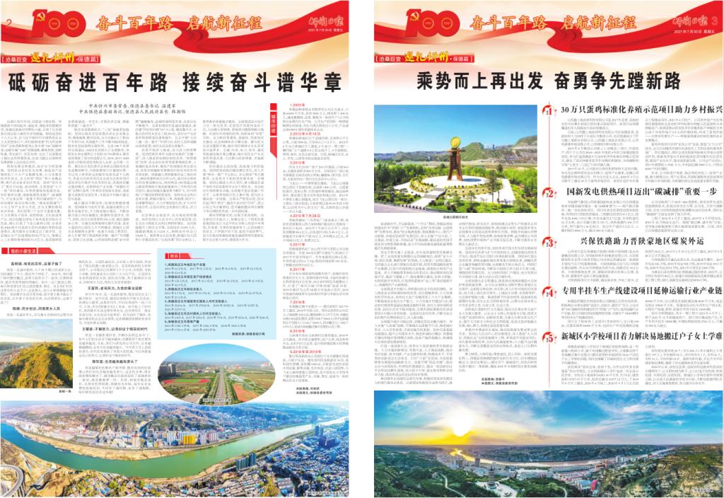 滄桑巨變百年間,啟航奮斗新征程。伴隨著新中國(guó)站起來(lái)、富起來(lái)、強(qiáng)起來(lái)的鏗鏘步伐,保德這座黃河岸畔的小城,實(shí)現(xiàn)了從貧困落后到全面小康的歷史性跨越。特別是黨的十八大以來(lái),在習(xí)近平新時(shí)代中國(guó)特色社會(huì)主義思想指引下,我們按照省委“四為四高兩同步”總體思路和要求以及市委“336”戰(zhàn)略布局,創(chuàng)新實(shí)施“1245”發(fā)展戰(zhàn)略,解放思想、搶抓機(jī)遇,篤定前行、攻堅(jiān)克難,交出了全面建成小康社會(huì)的保德答卷,在奮力蹚出全面轉(zhuǎn)型發(fā)展新路上邁出堅(jiān)實(shí)步伐。