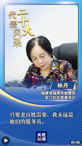 “二十大代表風采”一起來認識福建省福州市鼓樓區(qū)軍門社區(qū)黨委書記林丹。