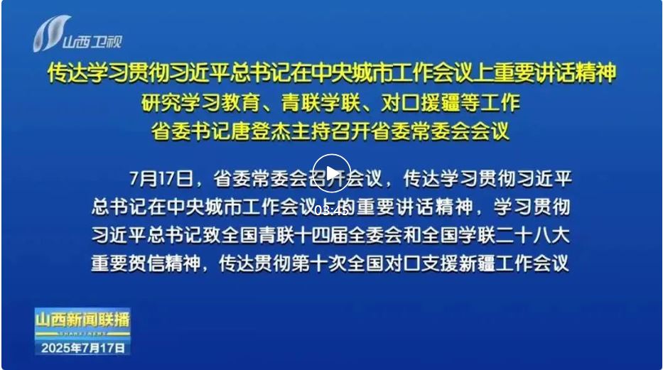 會議指出,要認(rèn)真落實(shí)第十次全國對口支援新疆工作會議精神,扛牢政治責(zé)任,完善工作機(jī)制,科學(xué)編制“十五五”援疆規(guī)劃,扎實(shí)推進(jìn)產(chǎn)業(yè)援疆、教育援疆、醫(yī)療援疆、文化潤疆和民族交往交流交融等重點(diǎn)任務(wù),為服務(wù)新疆社會穩(wěn)定和長治久安作出山西貢獻(xiàn)。