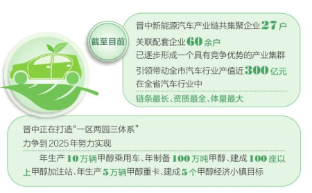 早在2022年初,在新能源汽車產(chǎn)業(yè)集群成型成勢的基礎(chǔ)上,晉中市搶抓戰(zhàn)略機(jī)遇,啟動建設(shè)國家級甲醇經(jīng)濟(jì)示范區(qū),力爭三年成型、五年成勢,構(gòu)建千億級甲醇經(jīng)濟(jì)生態(tài),省委、省政府把建設(shè)晉中國家級甲醇經(jīng)濟(jì)示范區(qū)上升為省級戰(zhàn)略。