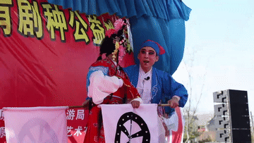 陽春三月,在太原古縣城,一出太原秧歌《劉三推車》正在生動(dòng)上演,“農(nóng)夫”和“小仙女”在臺(tái)上一唱一和,游客們?cè)谂_(tái)下和著春風(fēng)看得入迷。